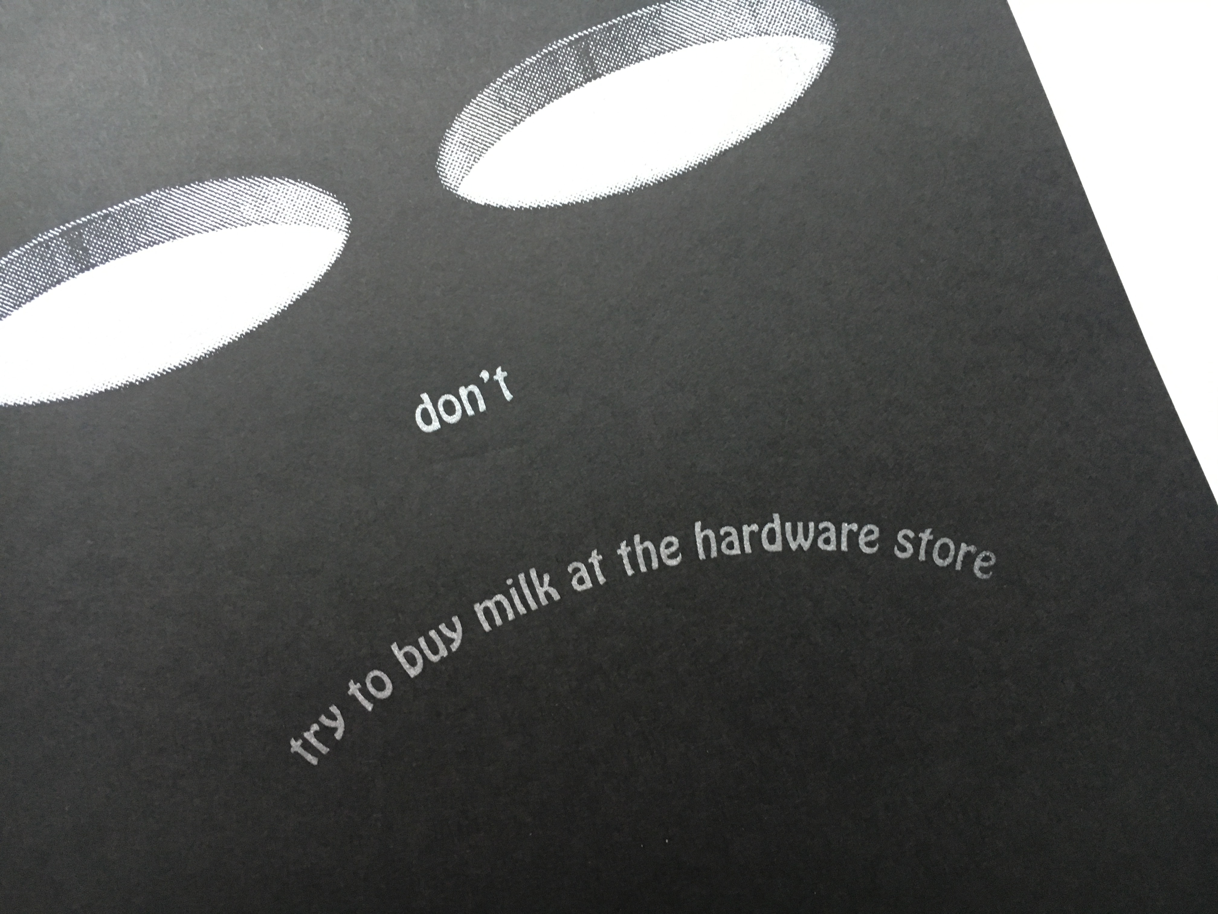 8.5 x 11” screenprinted metallic silver on black cardstock